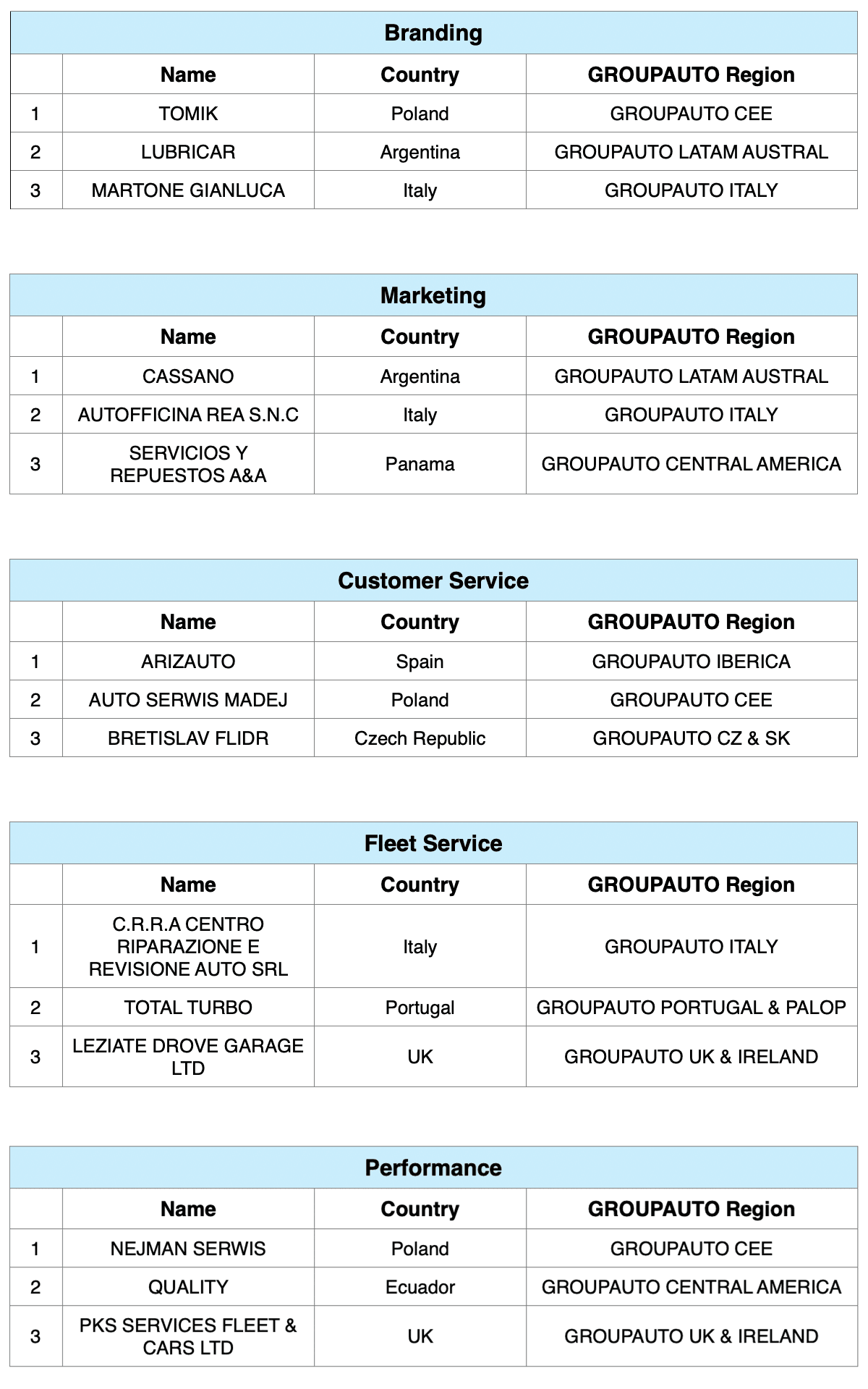 Taking these categories into account, the Network Managers from the 29 countries where the GROUPAUTO network is present have selected and nominated their best candidates from among nearly 7,000 workshops worldwide.